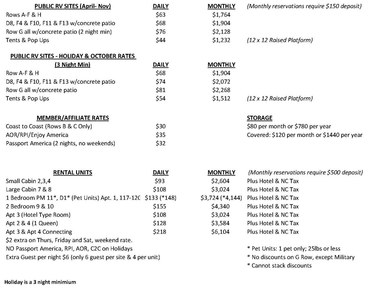 2025 RV and Lodging Rates